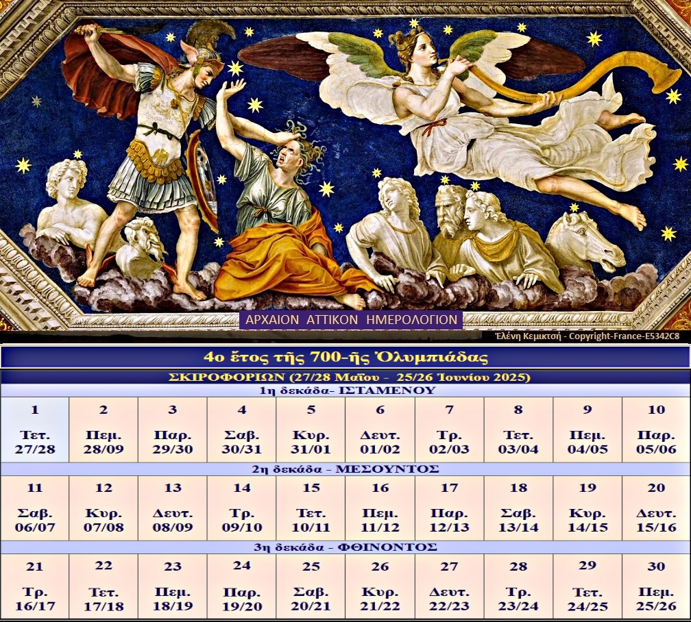 1ème année de la 701eme Olympiade (2025- 2026): ΕΚΑΤΟΜΒΑΙΩΝ - ΜΕΤΑΓΕΙΤΝΙΩΝ - ΒΟΗΔΡΟΜΙΩΝ - ΠΥΑΝΕΨΙΩΝ - ΜΑΙΜΑΚΤΗΡΙΩΝ - ΠΟΣΕΙΔΕΩΝ(A') - ΠΟΣΕΙΔΕΩΝ(Β') - ΓΑΜΗΛΙΩΝ - ΑΝΘΕΣΤΗΡΙΩΝ - ΕΛΑΦΗΒΟΛΙΩΝ - ΜΟΥΝΙΧΙΩΝ - ΘΑΡΓΗΛΙΩΝ - ΣΚΙΡΟΦΟΡΙΩΝ Les mois à venir sont remplacés par une image provisoire.
