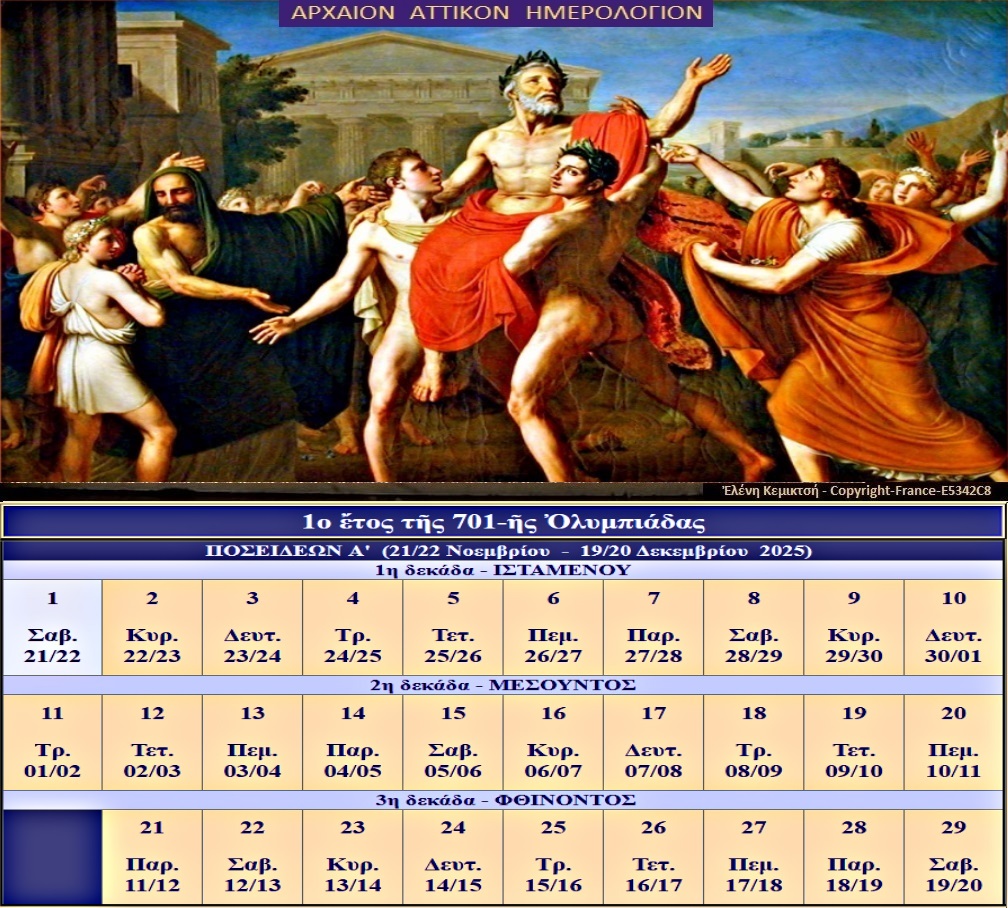 L'image changera au fil des mois - Cette année nous entrons dans la 1ème année de la 701ème Olympiade depuis les premiers Jeux Olympiques qui eurent lieu en 776 avant JC. Le sixième mois (bis) de l'année Athénienne est Poseidon(2eme)